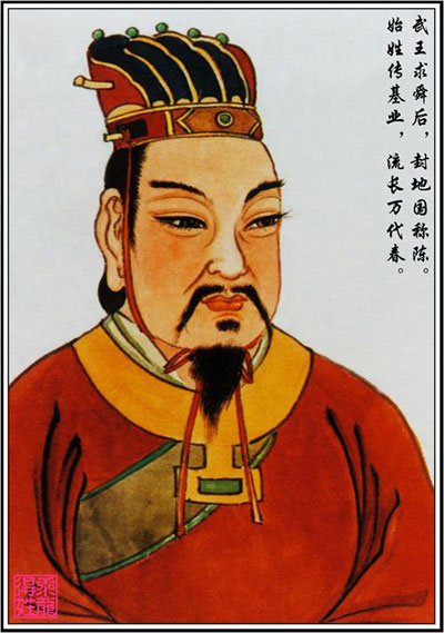 陈姓的始祖是胡公满。满即妫满乃舜帝三十四代孙。周武王灭商纣王建立了周朝。周武王为了笼络天下,特封妫满为诸侯,封国于陈地(今河南淮阳县,故称老陈户),谥号胡公,建立了陈国,满的子孙有的以国为姓即是陈姓的由来。从西周初年的陈胡公满开始距今三千多年。