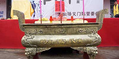 接下来,进行了简短的祭祖仪式。会长陈人敏老先生,代表全族宗亲向列祖列宗净手上香敬礼,祈愿先祖庇佑,企盼泰山陈氏重振。理事长陈开新,宗亲代表果坝九组陈开寿,代市老街陈景志先后发言,衷心希望泰山场全体陈氏儿女再接再厉,持续奉献,为了更好更快地建设好我们的共同精神家园而努力奋斗!全体与会的宗亲一一向先祖牌位上香敬礼,默默祈祷,祈祷天佑中华,天佑陈氏!