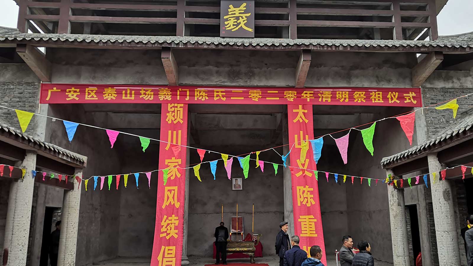 公元二零二零年四月四日,古历三月十二,一年一度的泰山场义门陈氏清明祭祖宗亲联谊大会,在美丽的渠江之滨,在重建中的宏伟的泰山陈氏祠堂如期举行。没有了往届的人声鼎沸,没有了往届的觥筹交错,但这绝不影响本届清明大会的特殊意义。与会的每一位亲人,都怀揣着一份诚挚的感恩之情,共同见证了一届特殊的清明大会。上午十时整,主持人陈景举一声“全体起立”,在场的亲人齐刷刷伫立,向在此次新冠疫情中牺牲的烈士和逝去的同胞志哀,展示了义陈子孙缅怀英烈,尊重生命,爱国爱家的真挚情怀。
